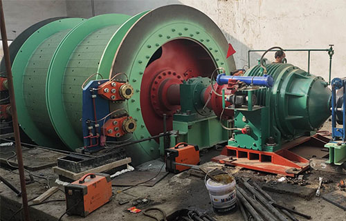 該提升機的主軸裝置有固定卷筒、活動卷筒(僅雙筒用)主軸、兩個軸承座、調繩機構(僅雙筒用)等部分組成,用來纏繞或釋放鋼絲繩。單筒提升機鋼絲繩為上出繩,雙筒提升機活動卷筒為下出繩,固定卷筒為上出繩,卷筒上裝有襯木。