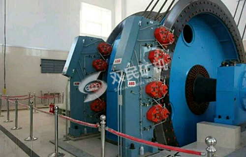 JKMD型多繩摩擦式提升機采用低速電動機時可不用減速器,電動機直接與卷筒主軸相連,或?qū)㈦妱訖C轉(zhuǎn)子裝在卷筒主軸的末端。傳動功率大時,可采用2臺或4臺電動機同時驅(qū)動。一臺提升機的總功率已達到11600千瓦。制動系統(tǒng)是保證提升機安全運行的重要裝置。遇緊急情況時,制動系統(tǒng)應(yīng)通過可調(diào)節(jié)制動力矩的液壓系統(tǒng)產(chǎn)生兩級安全制動,以保證提升機及時停車又不生產(chǎn)制動過猛現(xiàn)象。交流電動機驅(qū)動的提升機。其制動系統(tǒng)還要具有靈敏的制動力矩可能性能,以準(zhǔn)確控制提升機在臨近通車點時的運行速度。