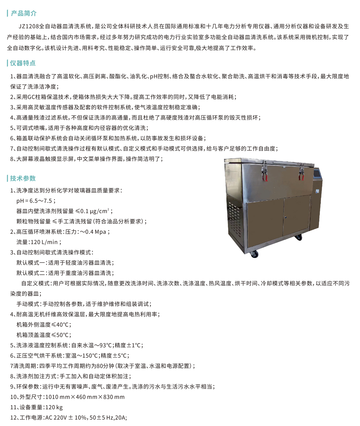 JZ1208全自動器皿清洗系統(tǒng),是公司全體科研技術人員在國際通用標準和十幾年電力分析專用儀器、通用分析儀器和設備研發(fā)及生